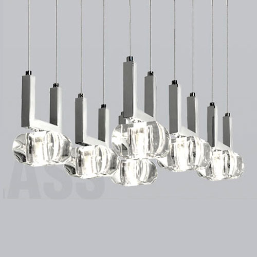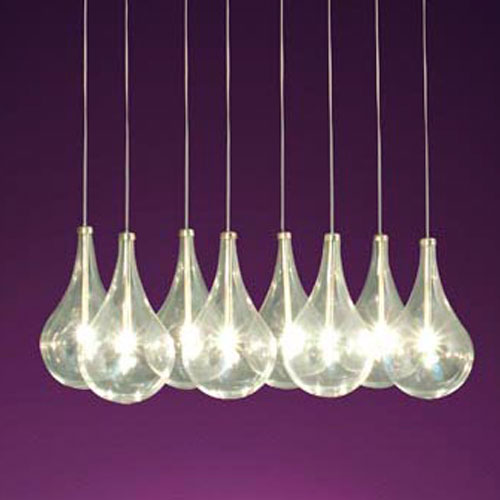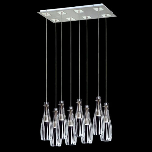 Colgante de 8 luces. Vidrio transparente.