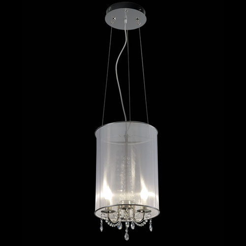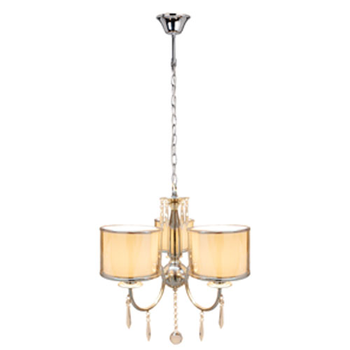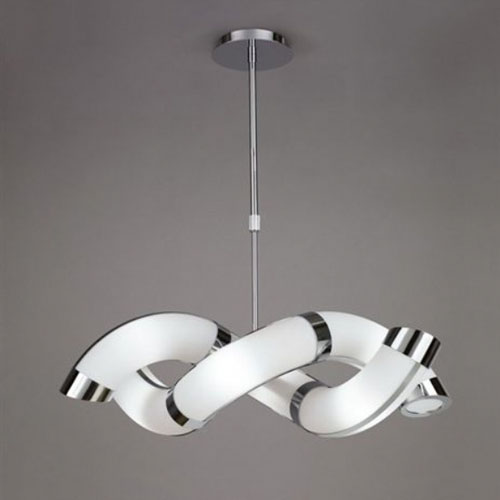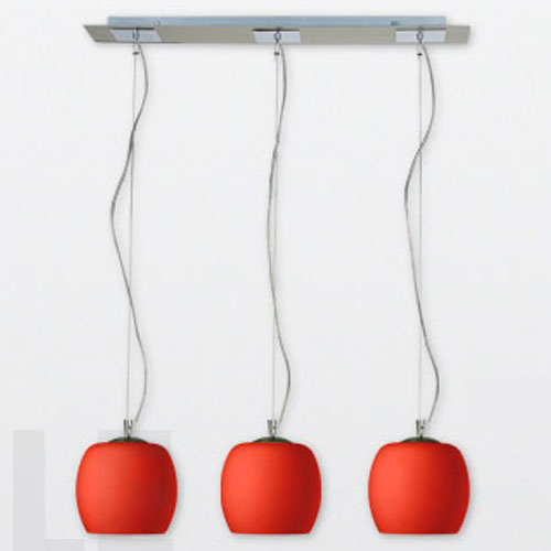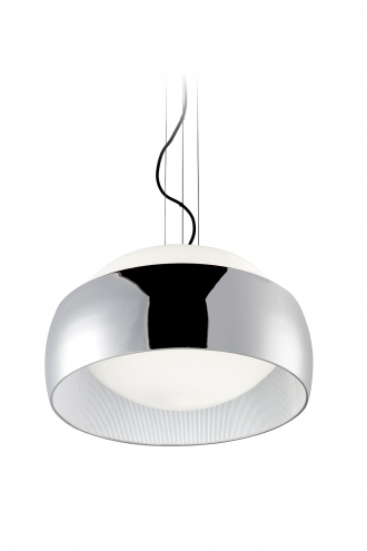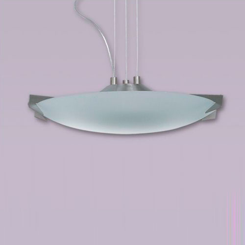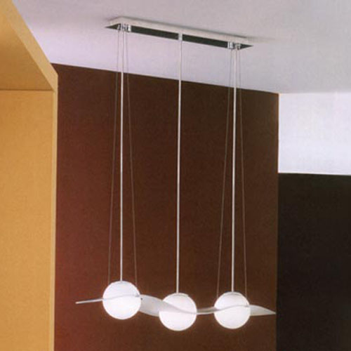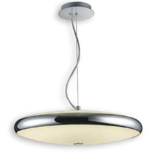 Colgante en vidrio opal satinado. Detalles en platil/cromo. Sobrelista para 3 luces.