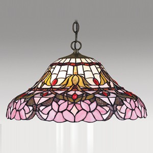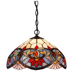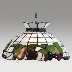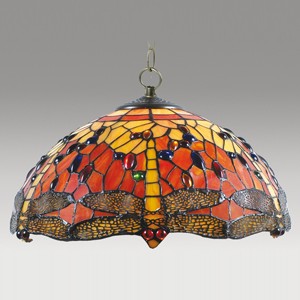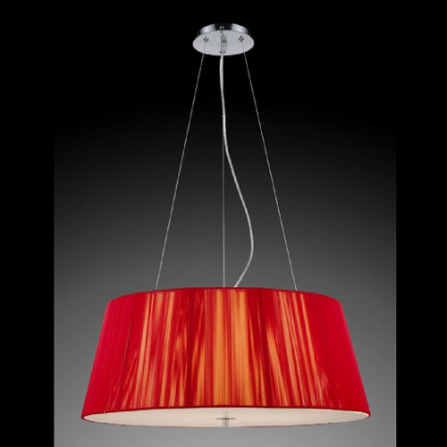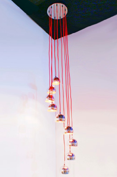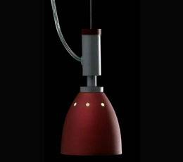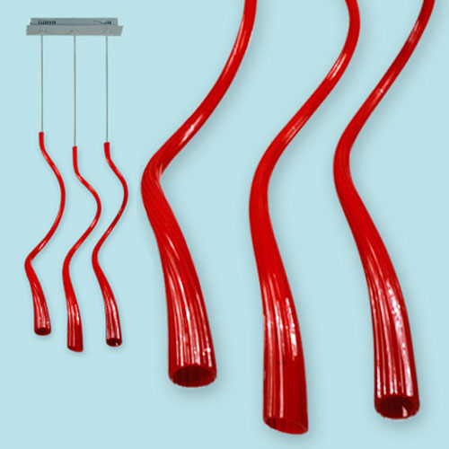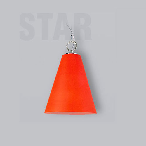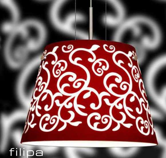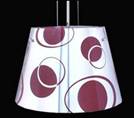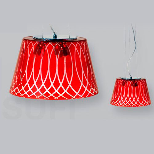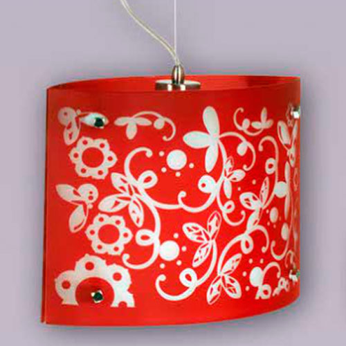 Colgante pantalla de vidrio soplado. Cristal fantasía serigrafiado rojo.