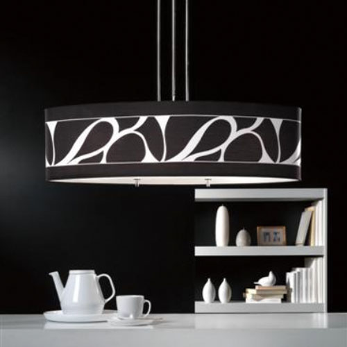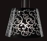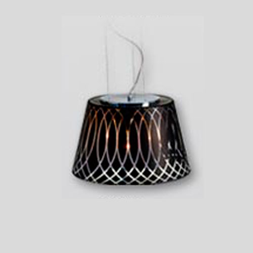 Colgante pantalla de vidrio soplado. Cristal fantasía serigrafiado negro.
