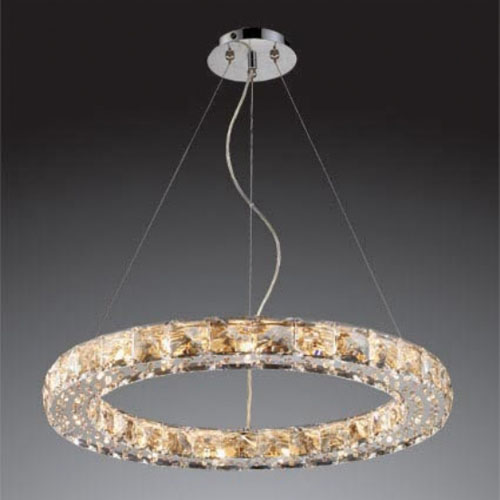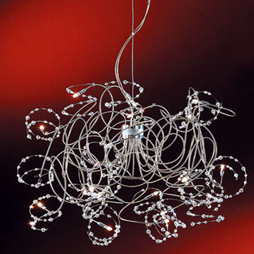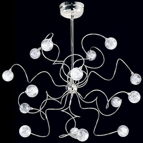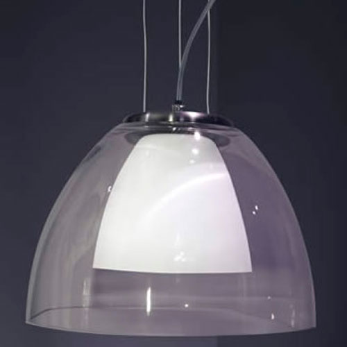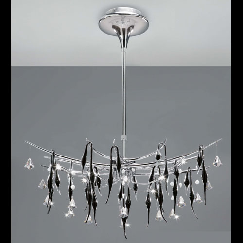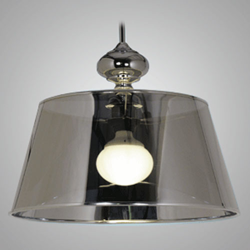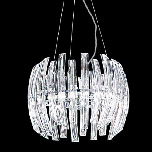 Colgante, vidrio color transparente, soporte cromado.