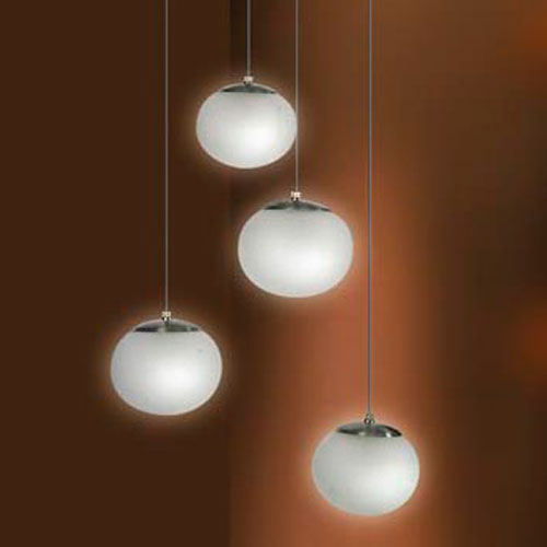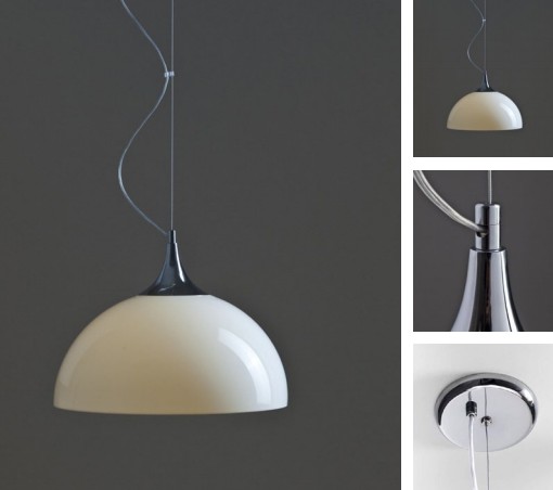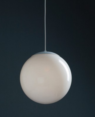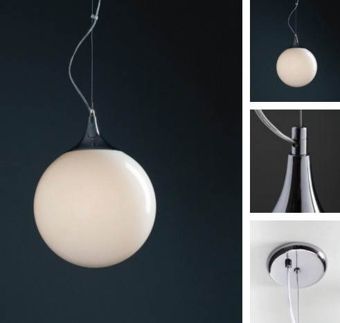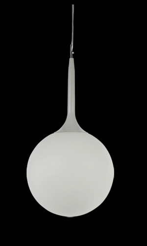Colgante de 1 luz en vidrio opal terminación brillante o satinado. Detalle en platil o cromo.