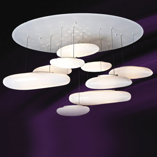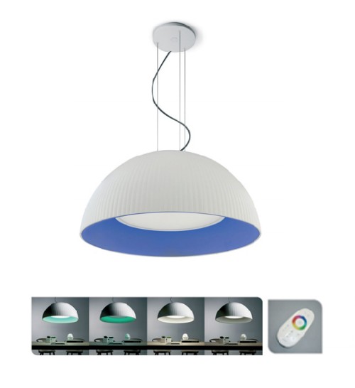 Colgante Tecnologia LED 10W, con control remoto a distancia. Material: Poliuretano Mate + Blanco.