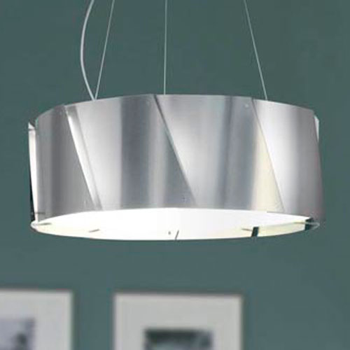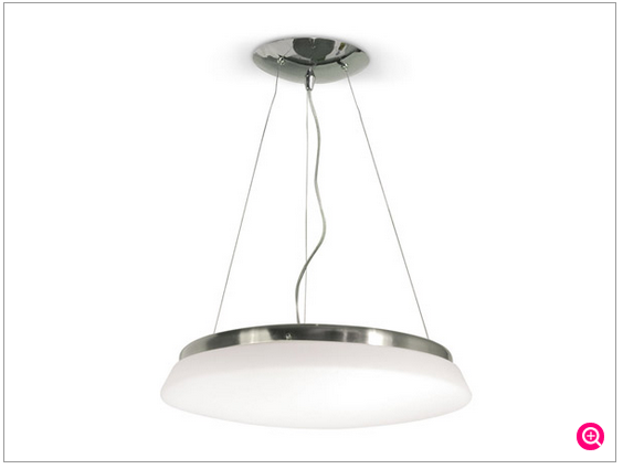 Colgante construÃdo en acero estampado con tulipa difusora en cristal opal.
