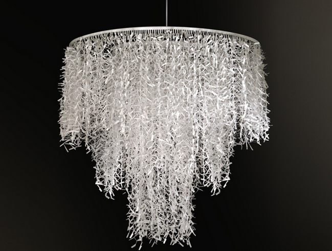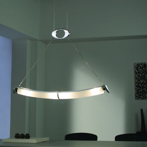 Línea colgantes y plafones en LED. Terminaciones blanco mate y cromo brillantes.