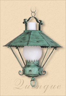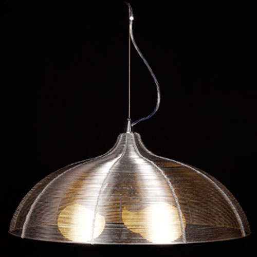 Colgante en chapa repujada platil de 3 luces, dicroico.