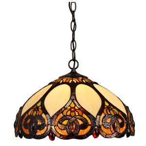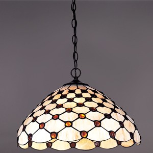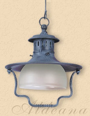 Colgante en vidrio opal satinado con detalle en chapa repujada platil.
