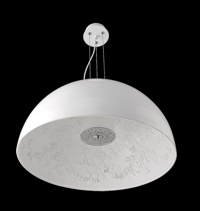 Colgante Esmalte aluminio blanco e interior negro semimate. Tecnologia LED >br> H:3000 A:500