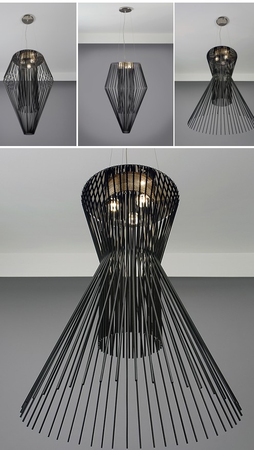 Colgante Metalico 3 luces con posibilidad de armado formato abierto o cerrado, Nikel brillante / Microtexturado Negro / Microtexturado Blanco