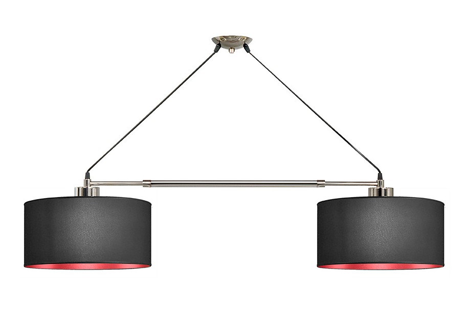 Colgante telescopico 2Luces con cable tejido, pantalla de lino. Niquel Brillante con cable tejido Blanco-Violeta-Verde-Azul-Rojo-Naranja-Amarillo-Negro