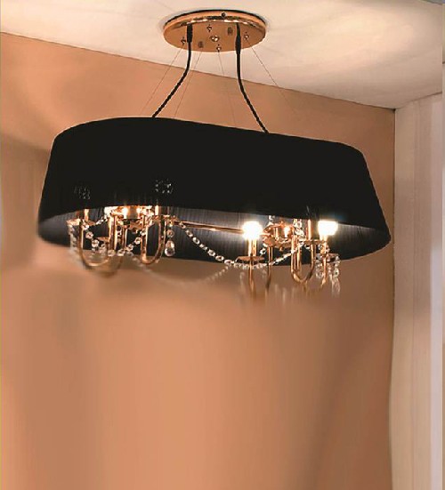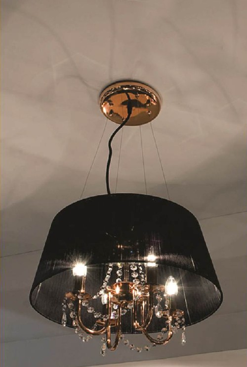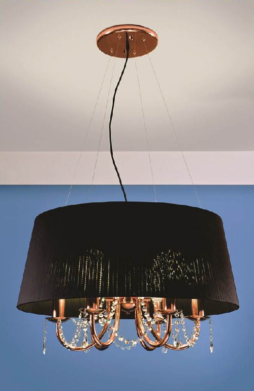 Colgante 6 Luces Cobre Brillo Cobre MatePantalla Organza Blanco o Negro.