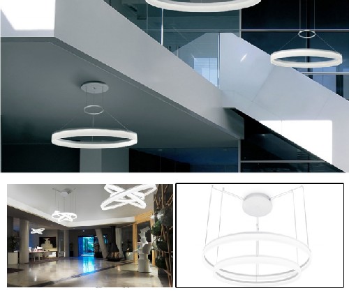Colgante 2 Aros de LED 1x22w + 1x31w Aluminio Mate y Blanco
