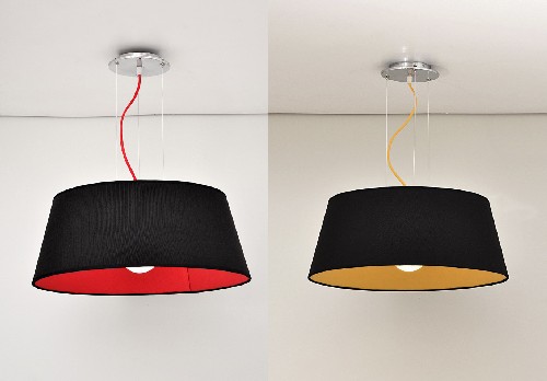 Colgante 1 Luz con interruptor, Pantalla: Cónica Material: Lino, Cable Textil: Rojo, Negro, Violeta, Amarillo, Verde, Azul, Naranja, Cobre, Oro