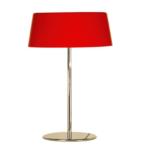 Lámpara de mesa constuida en acero. Tulipa en color rojo.
