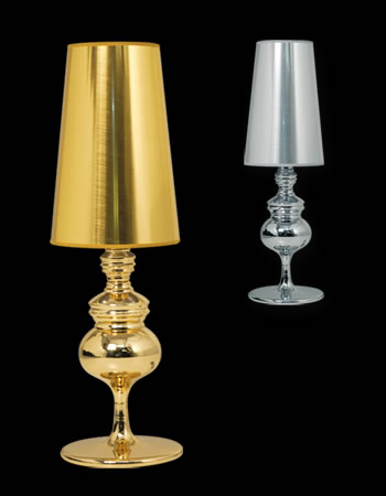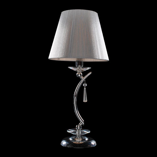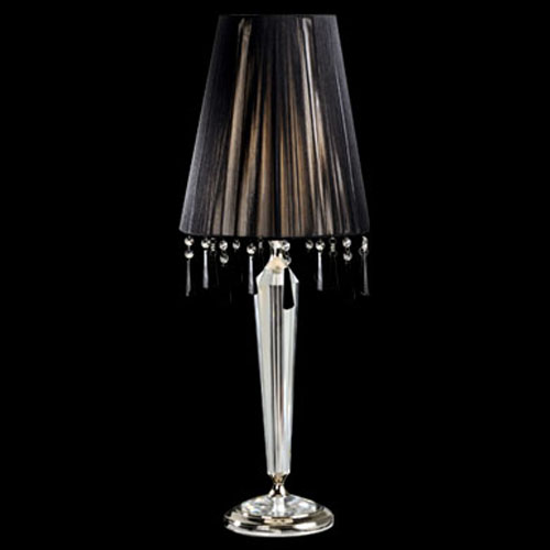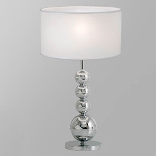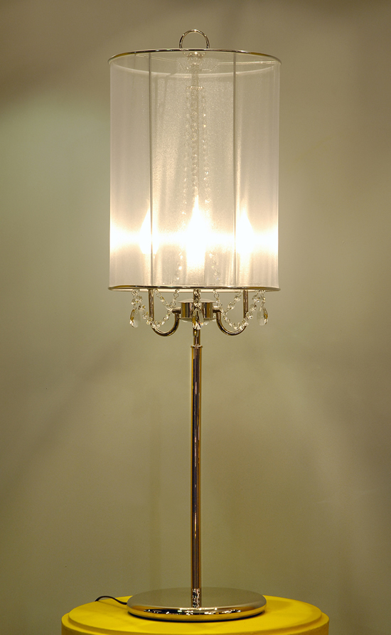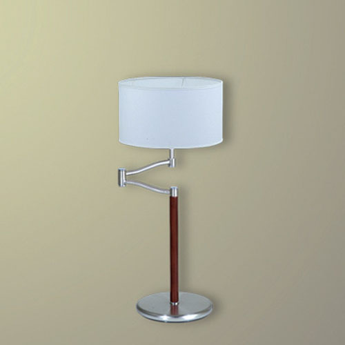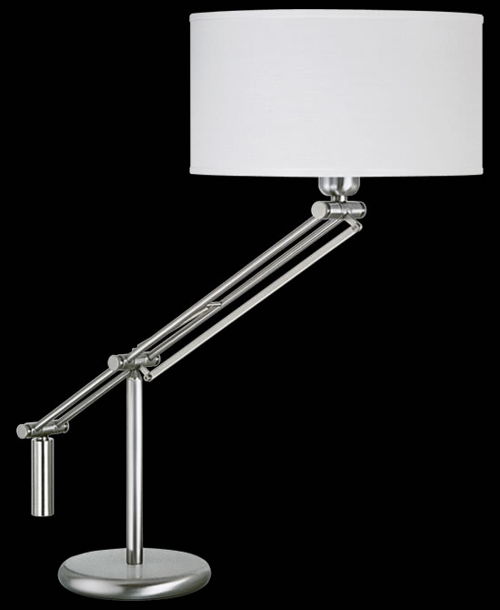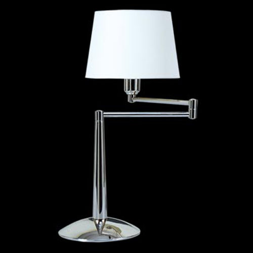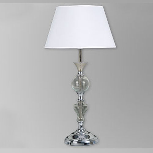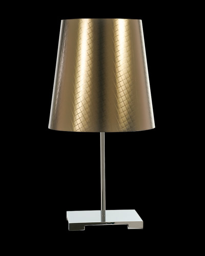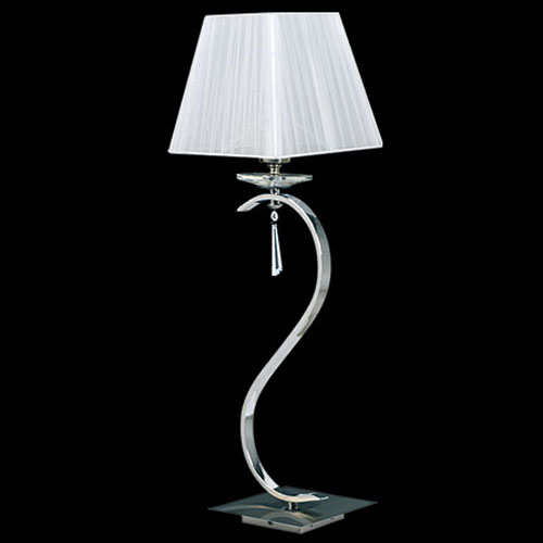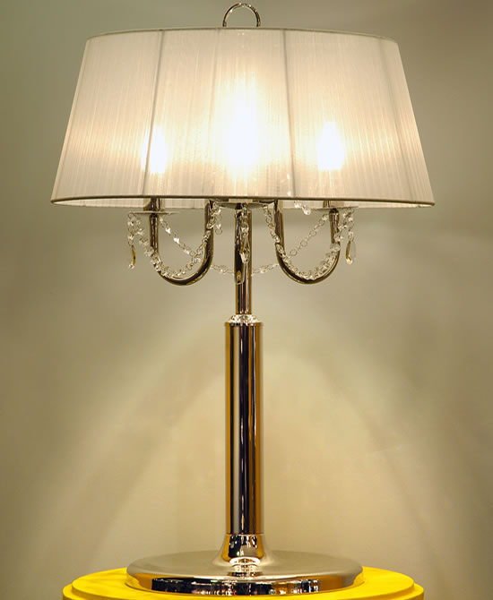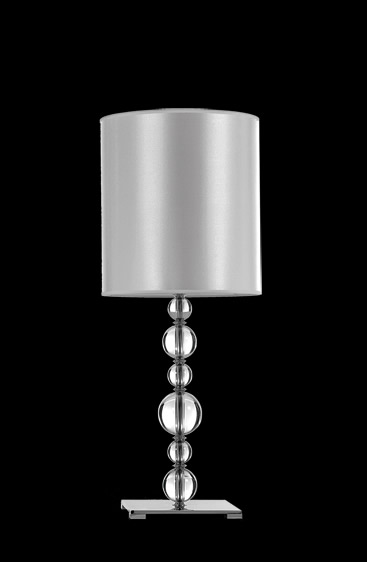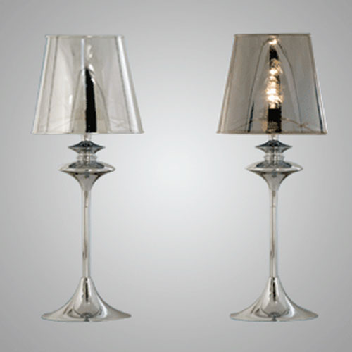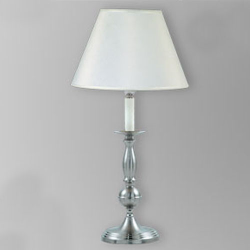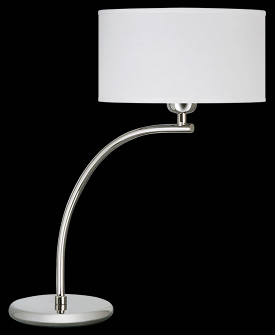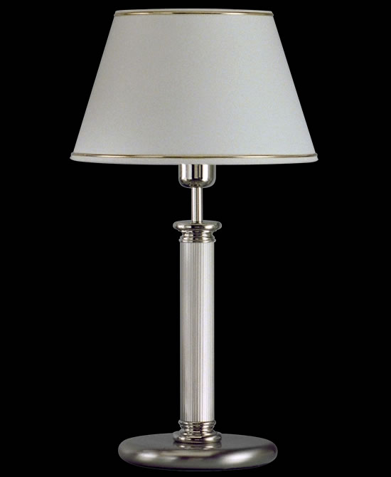Lámpara de Mesa terminación: Baño de Níquel con laca en polvo horneada transparente Cromo de espesor, Metal. Tela madraz liso o Jackard estampado