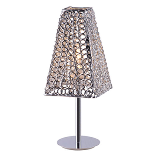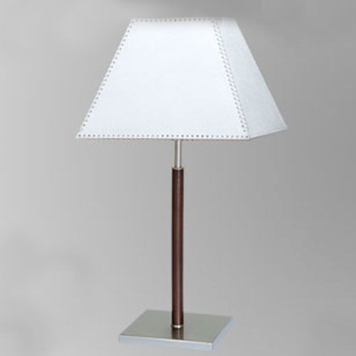 Lampara de mesa cromada pantalla rombo habano