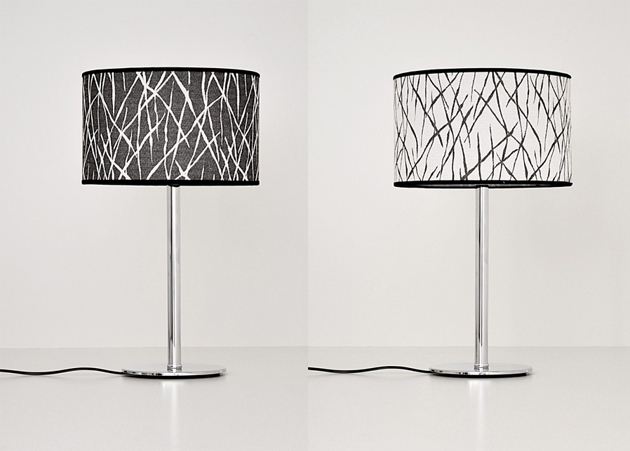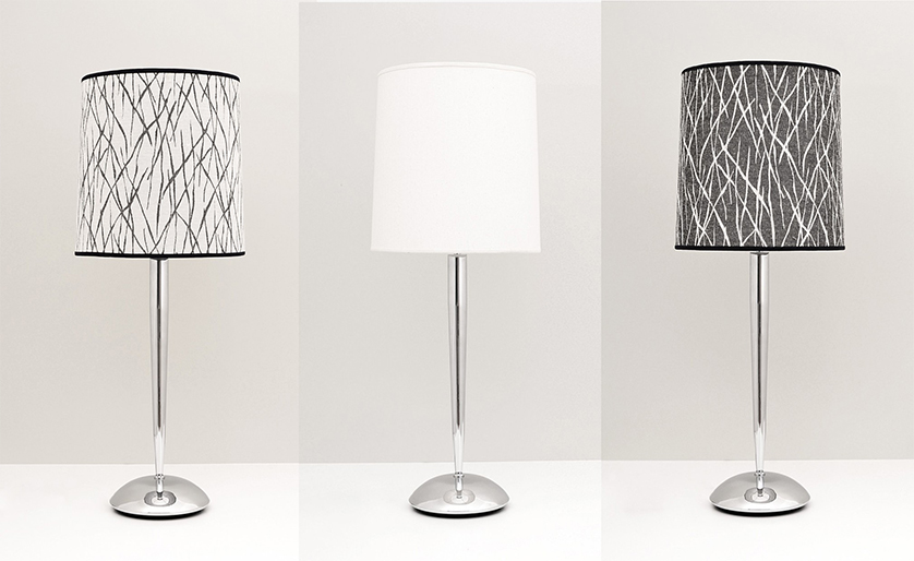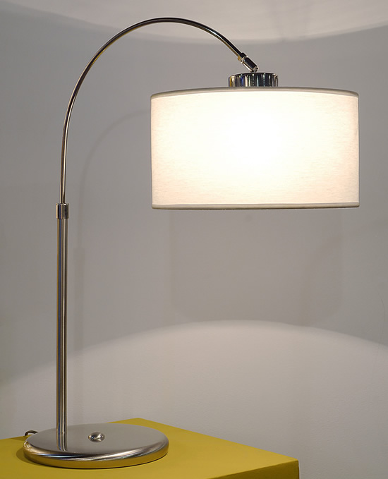 Lámpara de Mesa Pintura en polvo horneada microtexturada Baño de Níquel con laca en polvo horneada transparente Cromo de espesor, Metal Tela Madraz liso o estampada