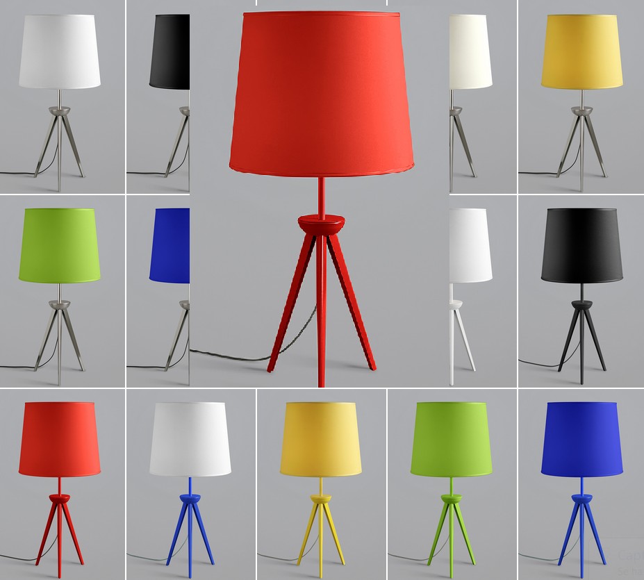 Lámpara de Mesa Tripode Pintura en polvo horneada microtexturada Materiales: Metal, Tela Madraz liso