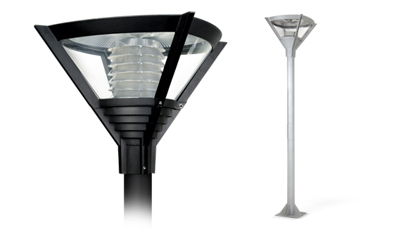 Farola, cuerpo de aluminio. Difusor de policarbonato opal. Reflector de policarbonato blanco.
