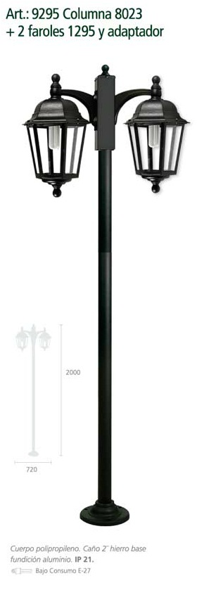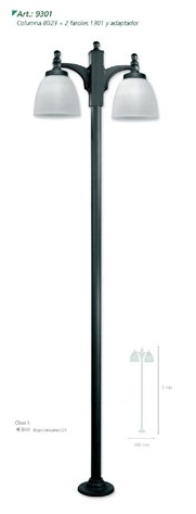 Farola. Fabricado en caño de hierro o aluminio. Visores en polietileno antivandalico blanco translucido.