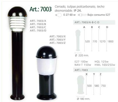 Farola pequeña cerrada con tulipas en policarbonato con techo desmontable.